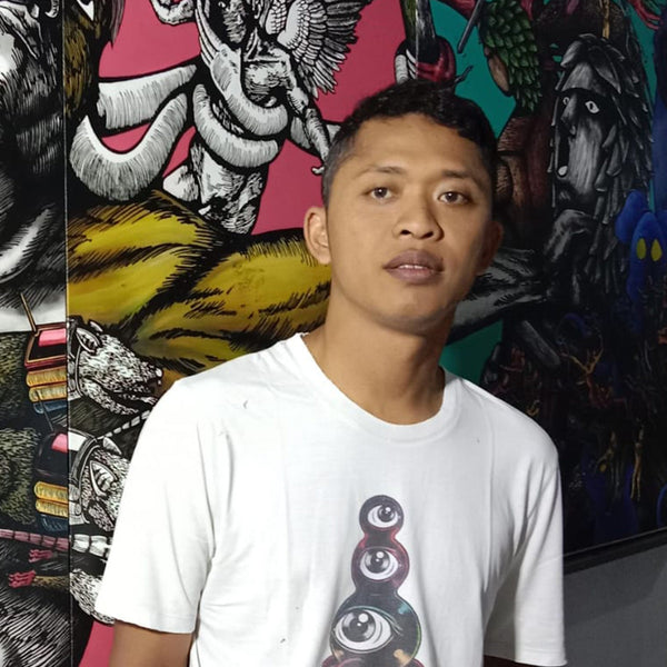 Angga Sukma Permana was born in Kulon Progo, Yogyakarta, was not exposed to visual arts until college, despite growing up in a culturally rich area. He is inspired by Anselm Kiefer’s experimental approach. Art sharpens his critical thinking, and he continuously hones his skills through practice. His dream is to participate in the Venice Biennale. His best piece, Lahirnya Sang Pahlawan, combines seven burned artworks with a custom masterprint. He tackles social issues ...